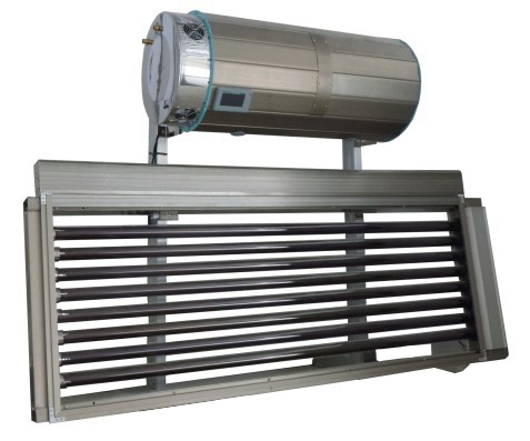 該產(chǎn)品室外太陽能集熱器部分采用注水式玻璃金屬套裝集熱管集熱器 ,其獨特的注水式結(jié)構(gòu)